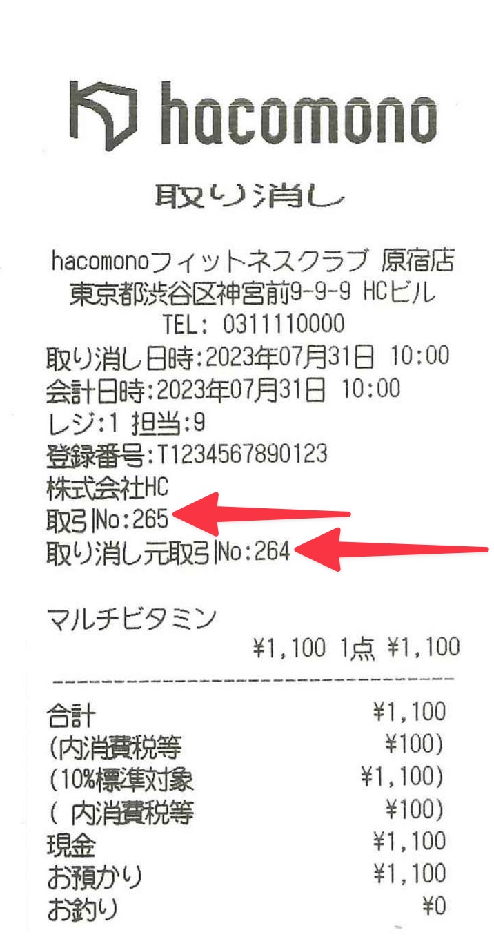 取り消しレシート: