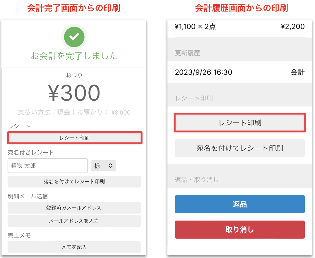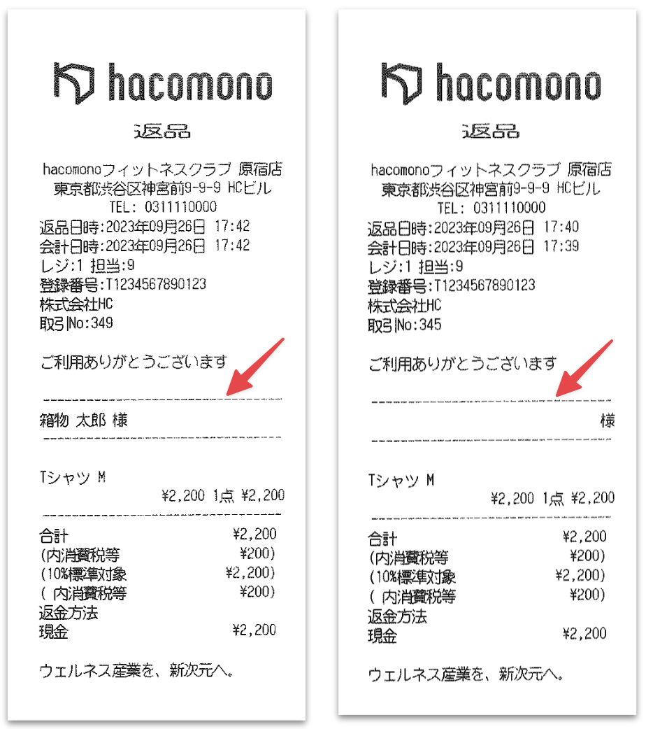 レシートに印刷される内容