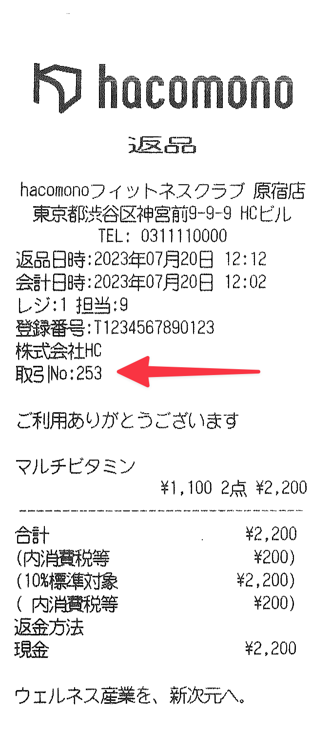 返品レシート: