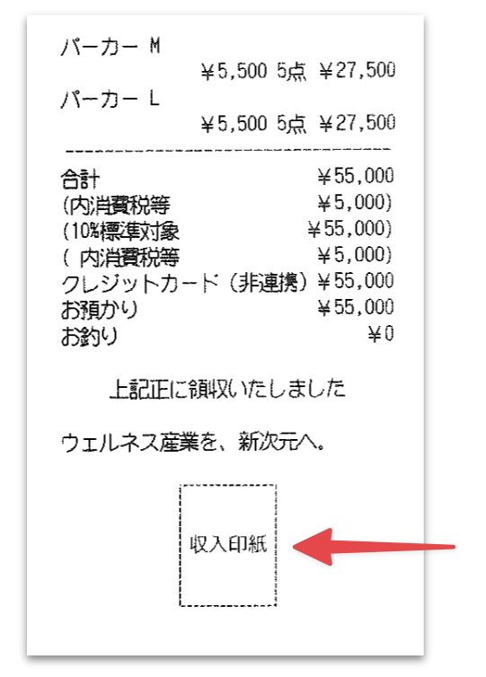 レシート下部に印紙貼付欄が印字されます。