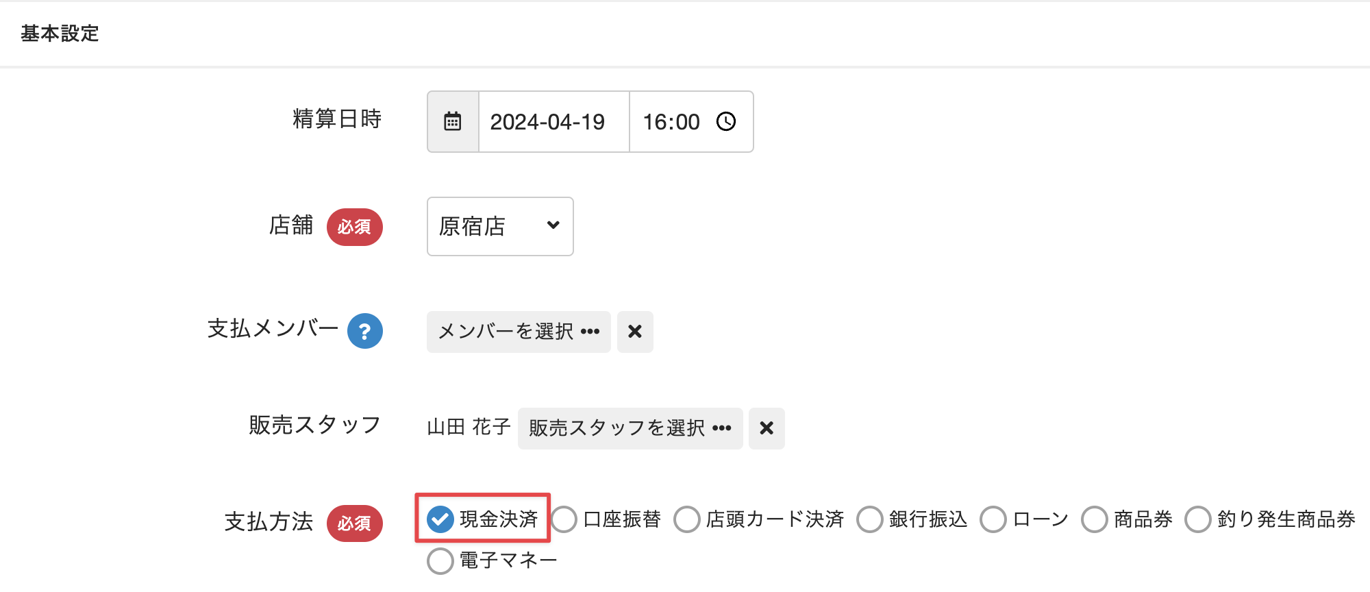 Tips:[販売スタッフ]は、誰がどれくらい販売したかを集計するために利用できます。集計には、データ集計(「データ集計機能を活用しよう」を参照)の[売上集計(販売スタッフ・商品別)]を利用できます。