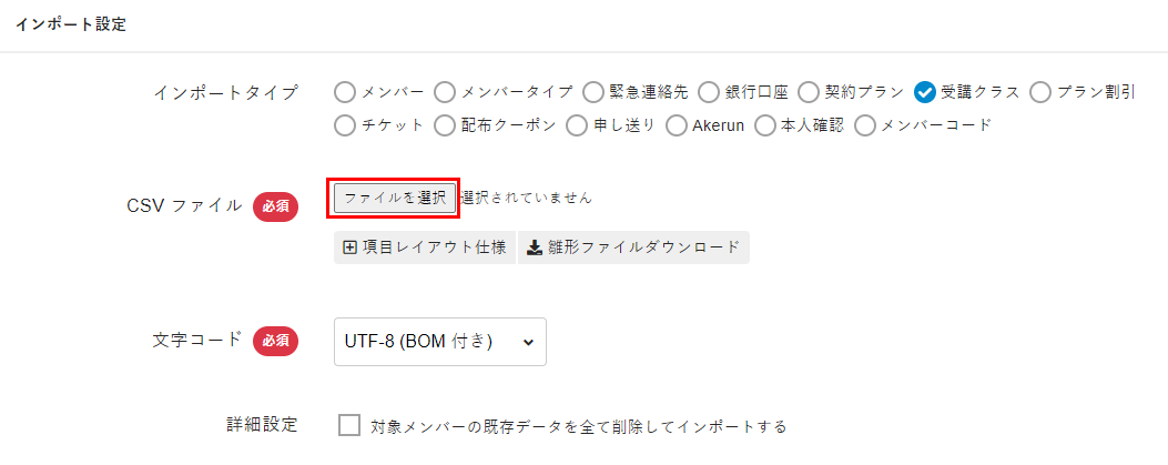 [インポートタイプ]から[受講クラス]を選択します。
