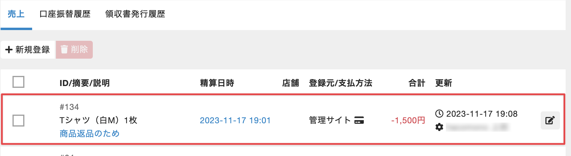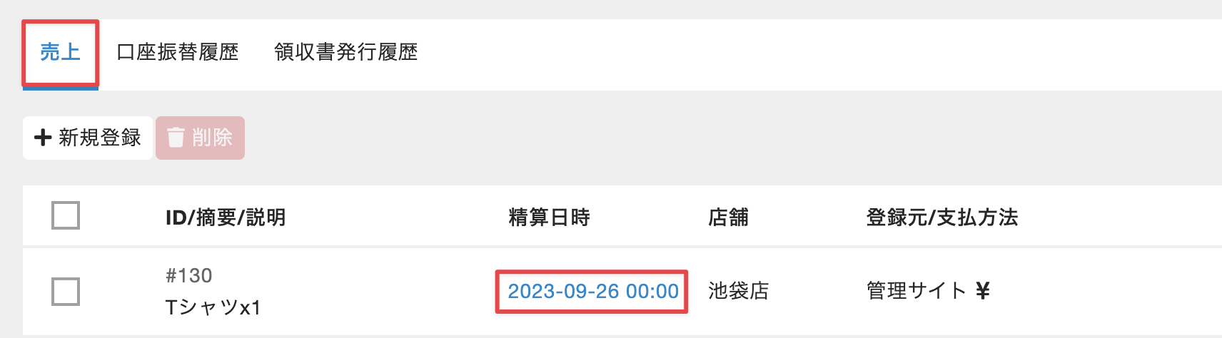 Note:管理サイトのサイドバーから[売上]>[売上]を選択し、該当の売上の[精算日時]をクリックした画面からも、売上を払い戻すことができます。 -
