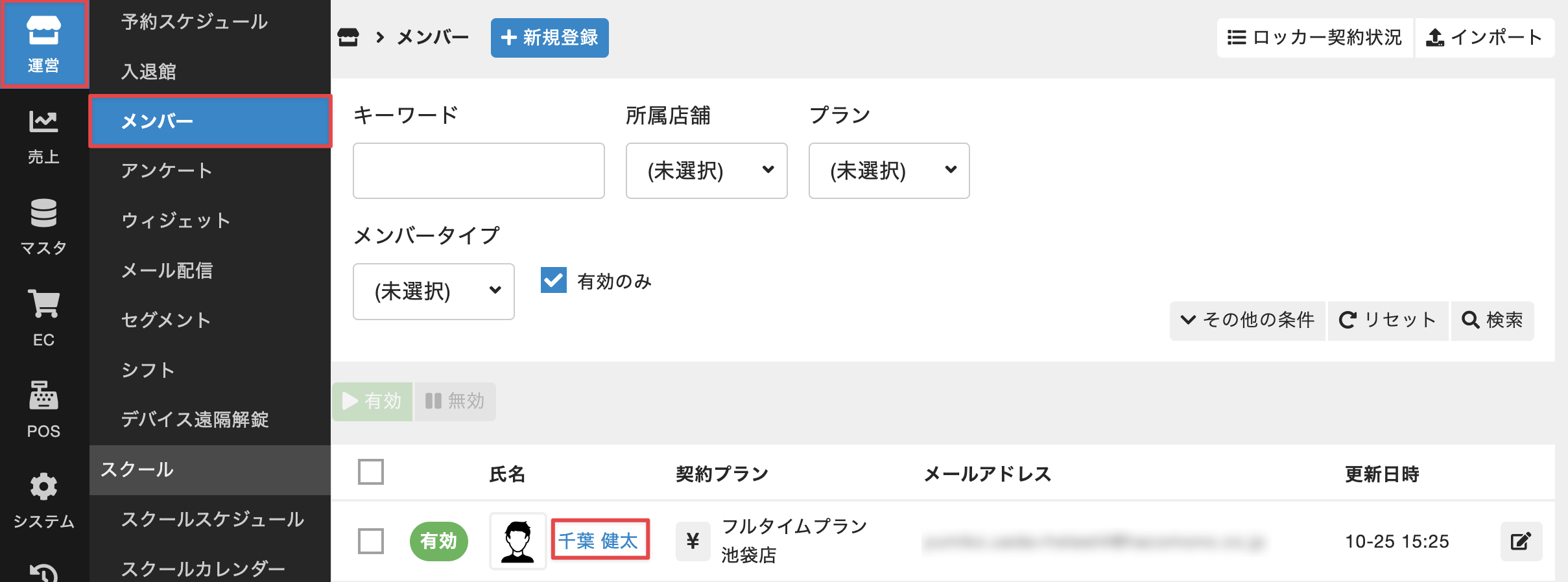- 管理サイトのサイドバーから[運営]>[メンバー]を選択し、対象メンバーの氏名をクリックします。