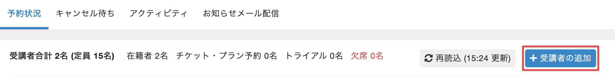 - 受講者の一覧に、予約したメンバーが追加されます。