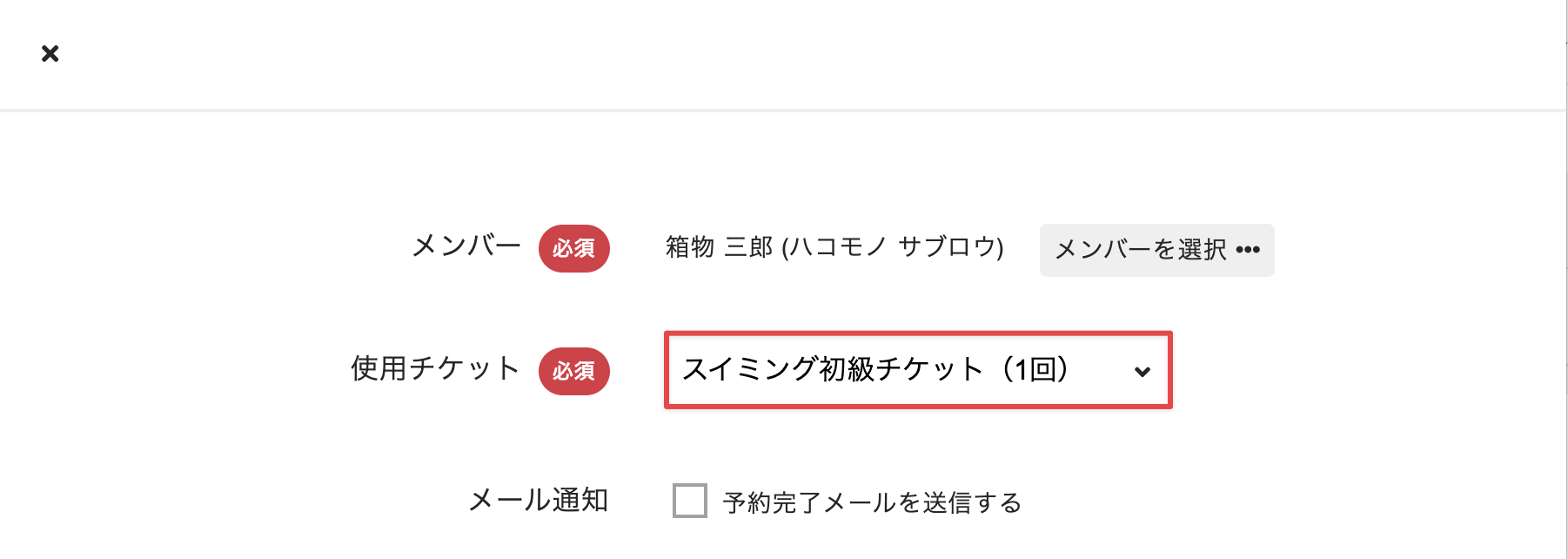 ここでは、予約用のチケットを所持しているメンバーの予約手続きを、管理サイトから行う場合の手順について説明します。