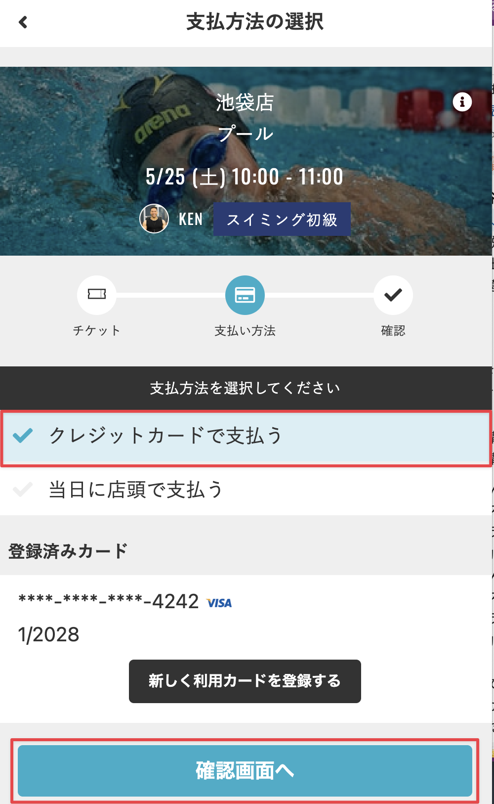 - 支払方法を選択し、[確認画面へ]をタップします。