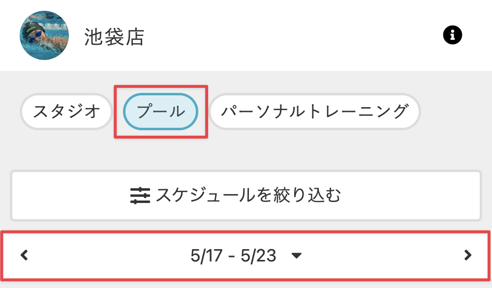 - 予約するレッスンの店舗を選択します。