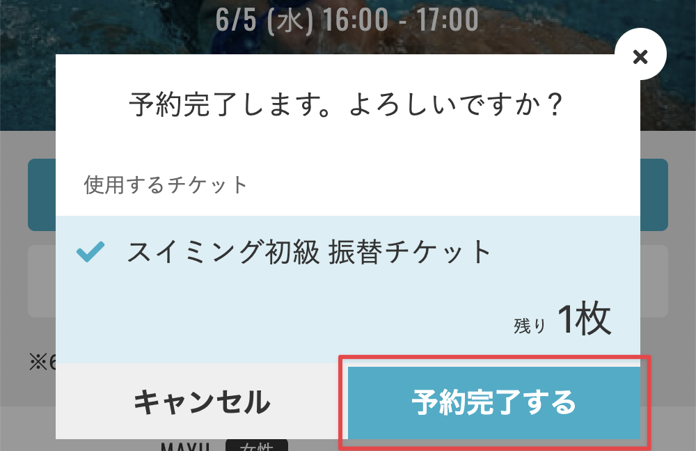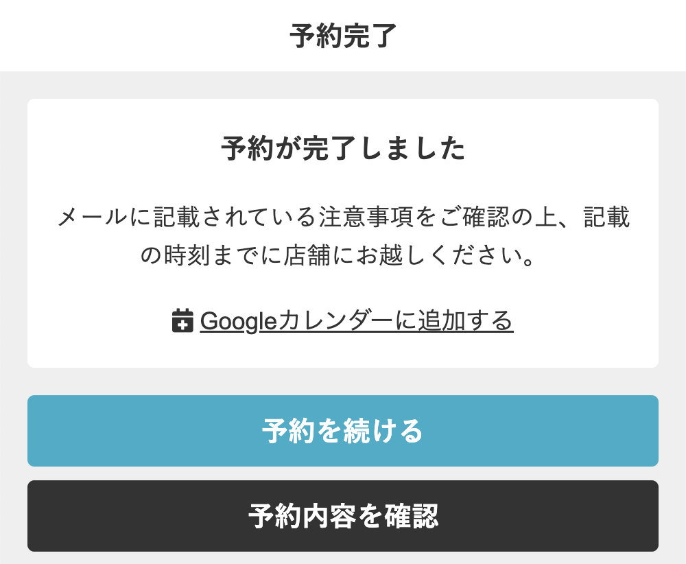 - 確認画面が表示されるので、[予約完了する]をタップします。