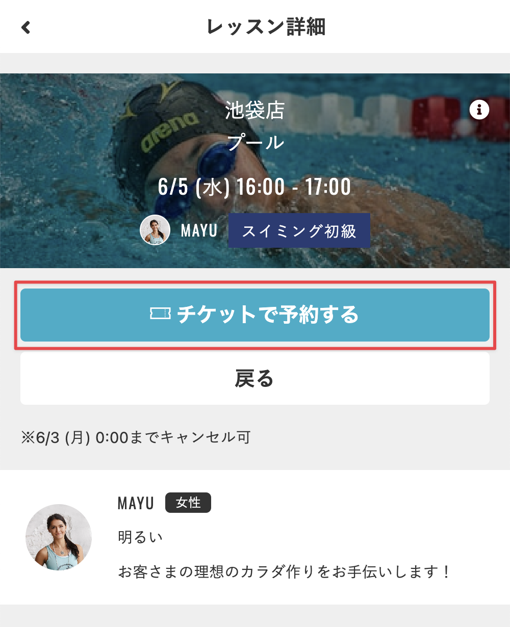 [チケットで予約する]をタップします。