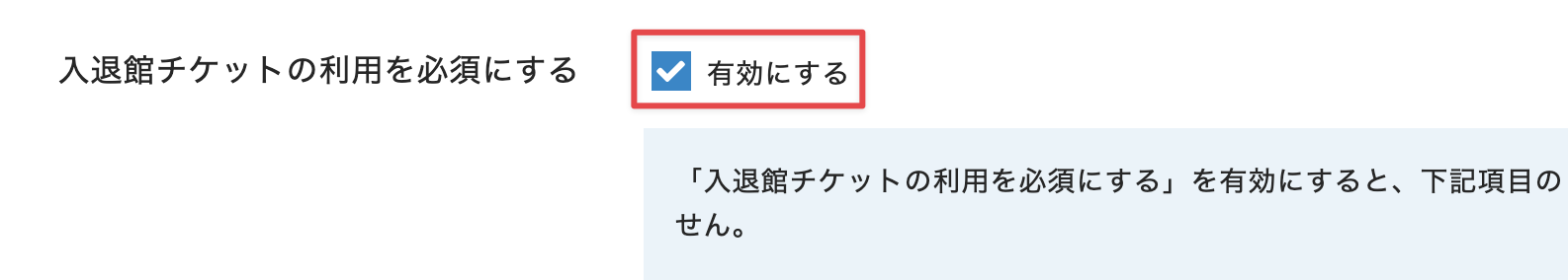 [入退館チケットの利用を必須にする]の[有効にする]にチェックを入れます。