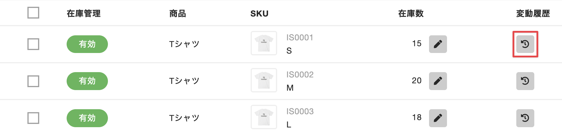 Note:在庫の変動履歴をCSVファイルでダウンロードする方法については、「在庫変動履歴をダウンロードする」を参照してください。