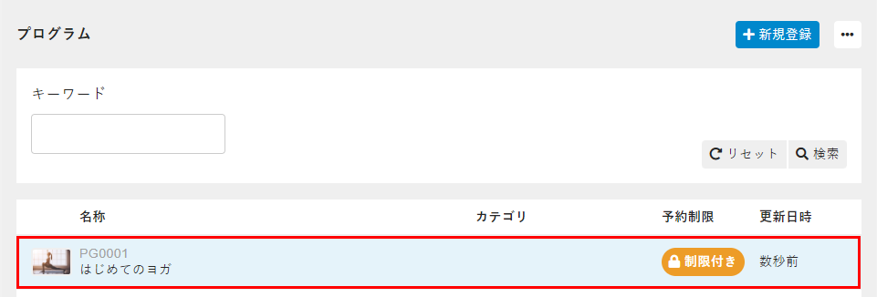 - 管理サイトのサイドバーから[マスタ]>[プログラム]を選択し、プログラムカテゴリを設定するプログラムを選択します。