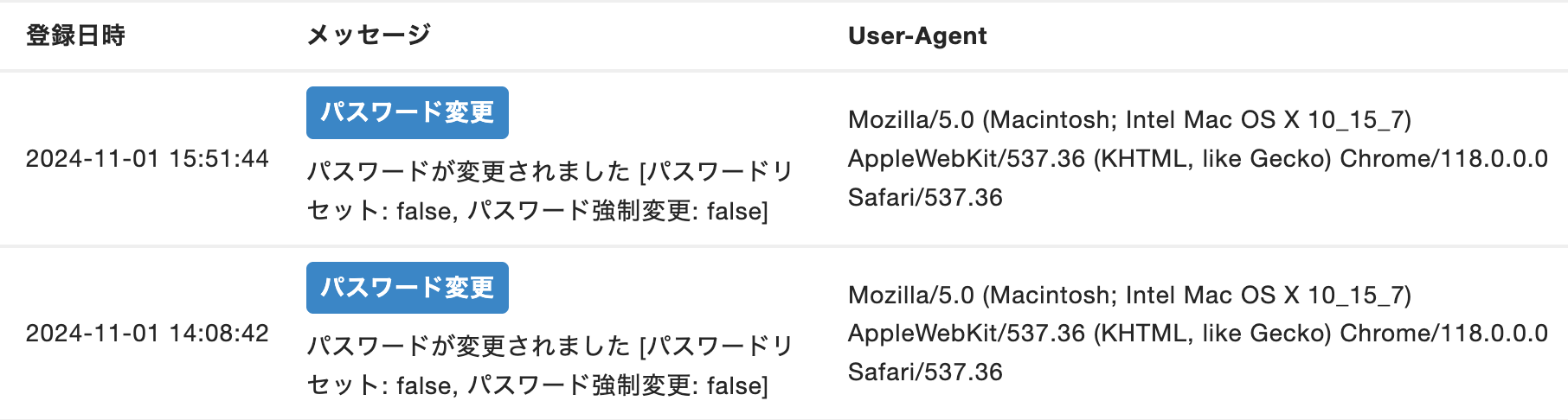 メンバーのプラン変更、パスワード変更、レッスンのチェックインなど、システム上で行われたさまざまな登録や変更の記録(ログ)を確認することができます。いつ、誰が、どのような変更を行ったかを把握することが可能です。