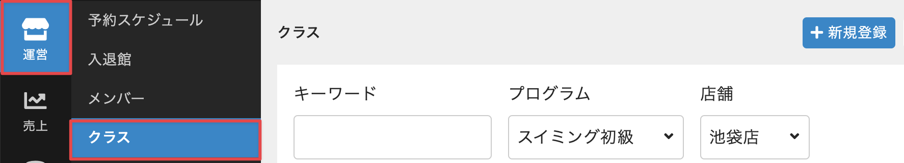 - 管理サイトのサイドバーから[運営]>[クラス]を選択します。