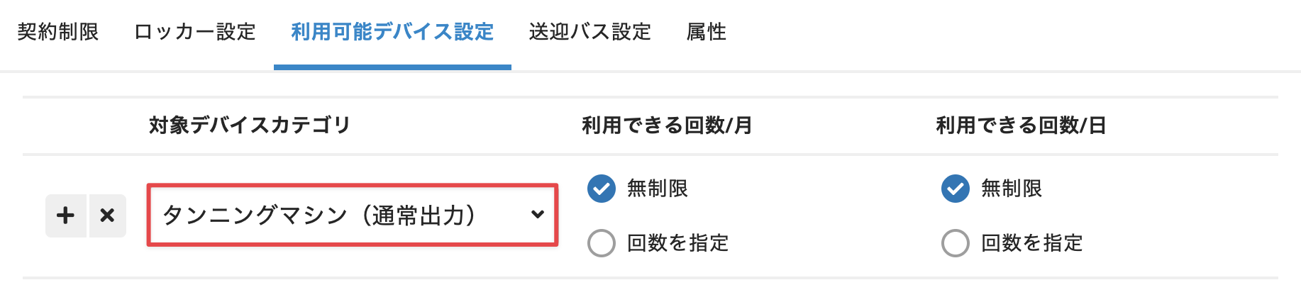 [利用できる回数/月]と[利用できる回数/日]に、それぞれ月別・日別の利用可能回数を設定します。