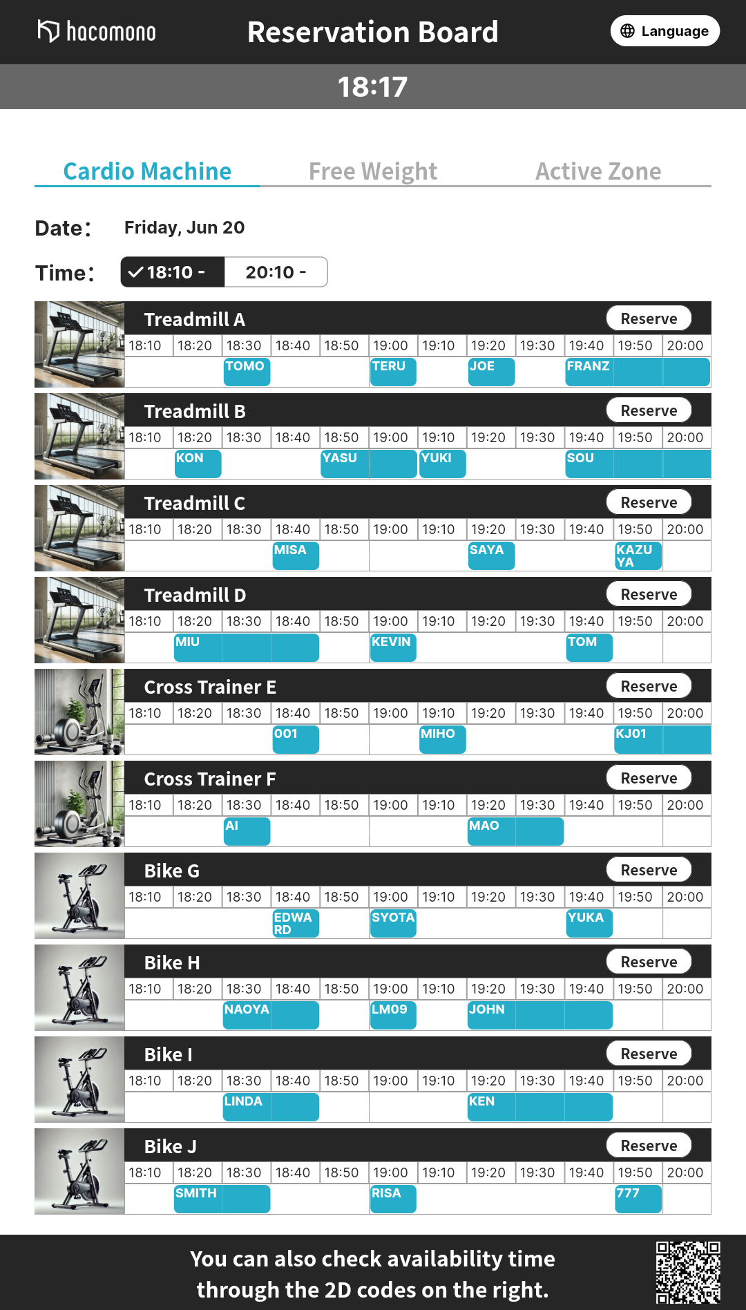 Note:予約ボードの表示言語を日本語に戻すには、画面上部の[Language]をタップし、[日本語]をタップします。