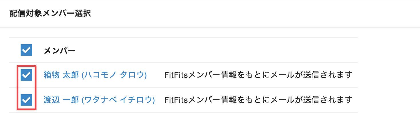 [配信対象メンバー選択]で、送信対象のFitFitsメンバーにチェックを入れます。