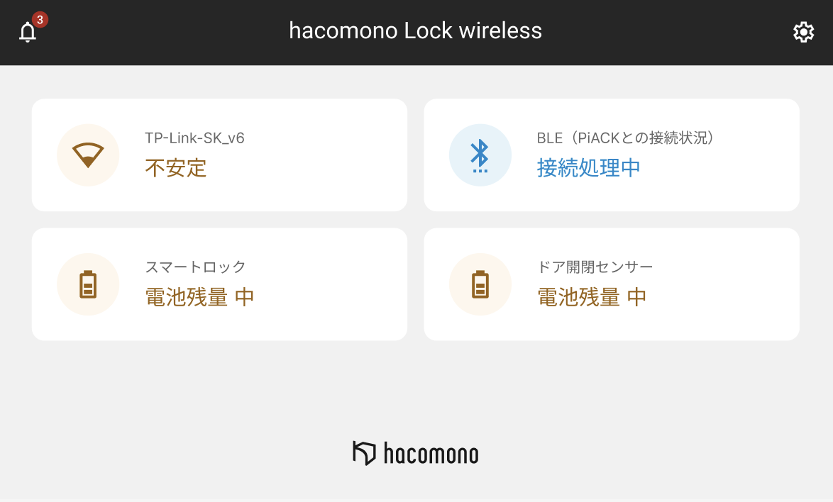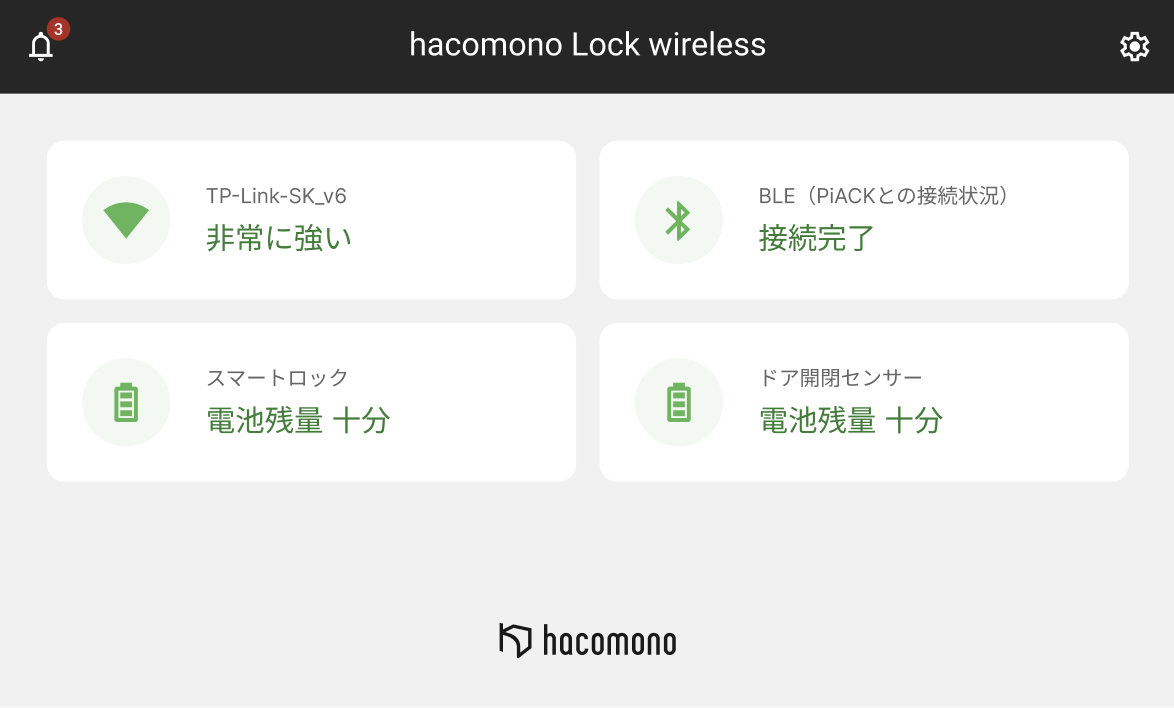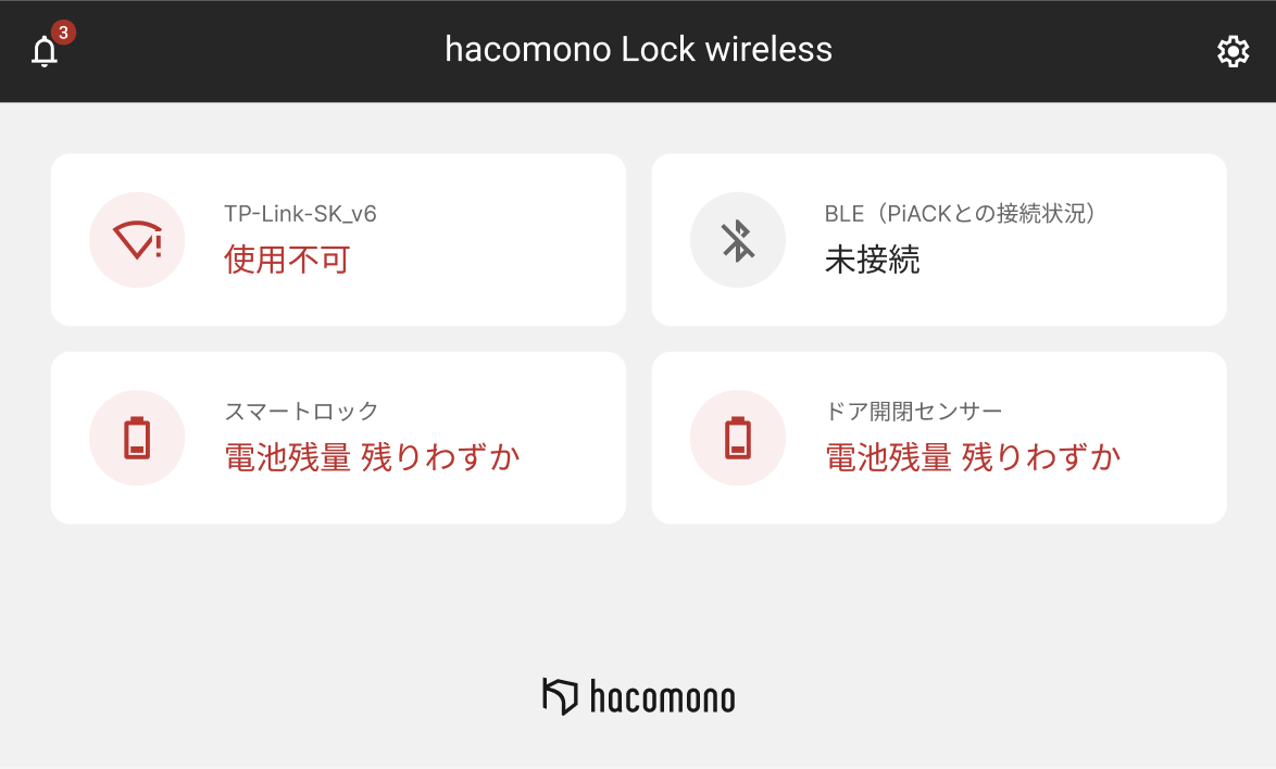 電池の残量は、hacomono Gatewayで以下の3段階で示されます。