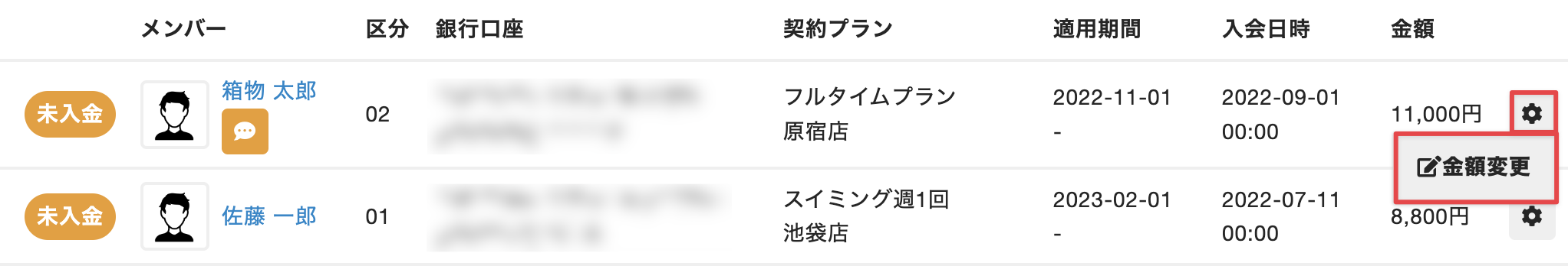 請求データを修正する(オンライン口座振替)