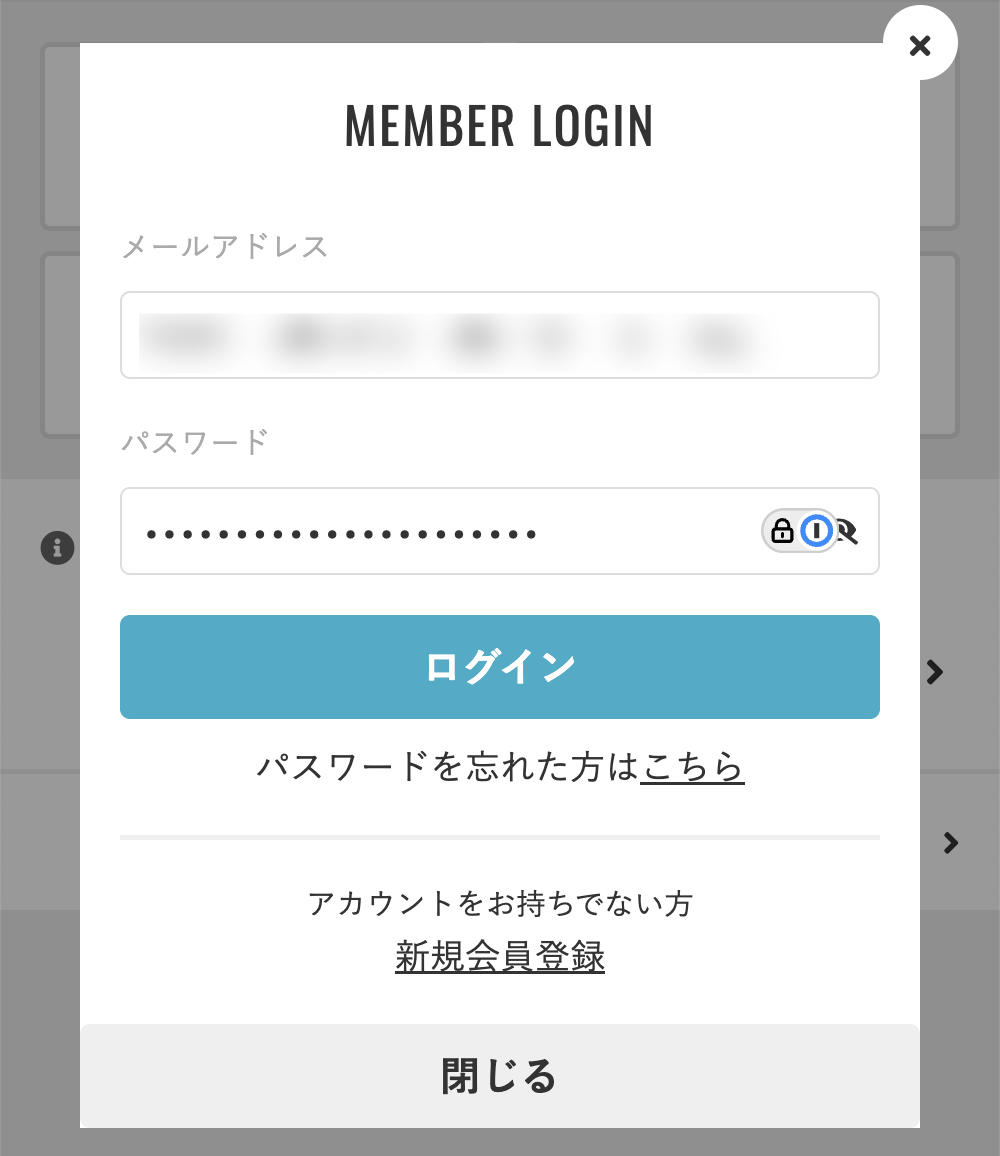 - 店舗スタッフからメールなどで案内されたメンバーサイトのURLにアクセスします。