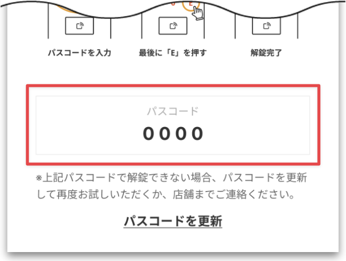 解錠成功のメッセージが表示されていても解錠されない場合は[パスコードによる解錠]をタップします。 - 画面下部に表示されるパスコードを確認します。