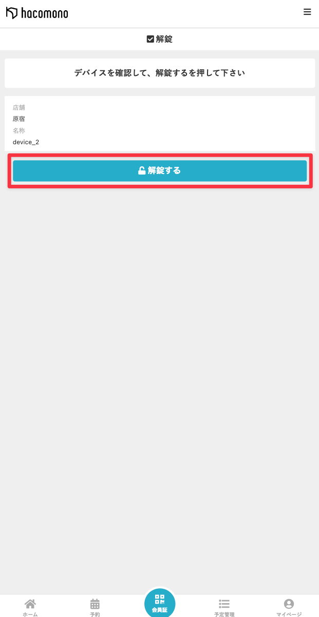 - ログイン中のメンバーサイトに解錠画面が表示されるので、[解錠する]をタップします。