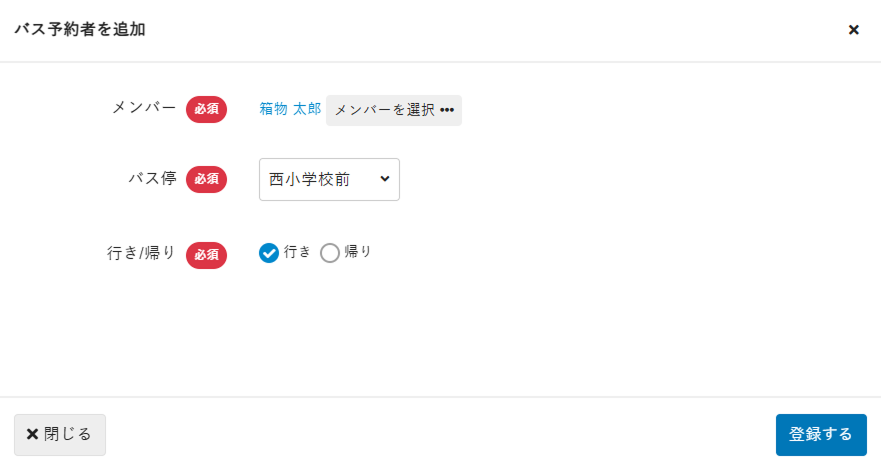 Note:選択したバスルートが「行き/帰り」の便の場合のみ表示されます。 - [登録する]をクリックします。