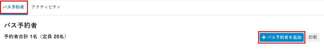 - [バス予約者]タブを選択し、[バス予約者を追加]をクリックします。