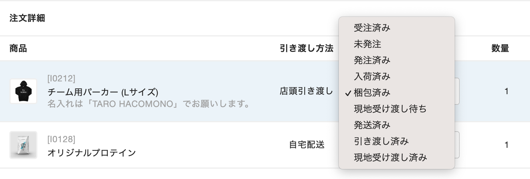 Tips:受発注管理ステータスは、商品単位のステータス管理で使用します。注文単位のステータス管理には使用できません。