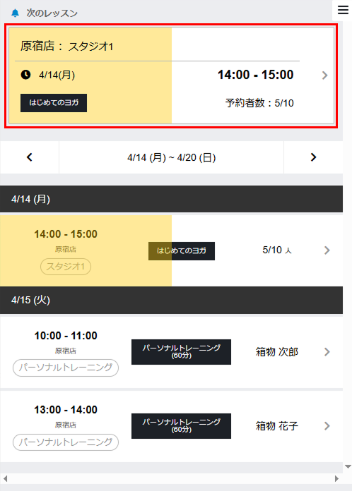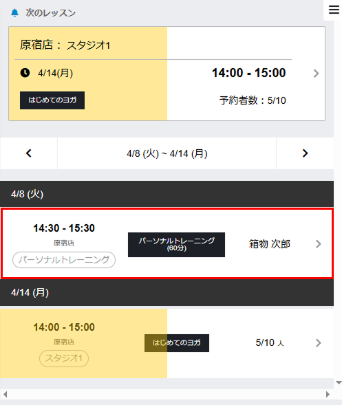 - レッスンの一覧画面で該当のレッスンをタップします。