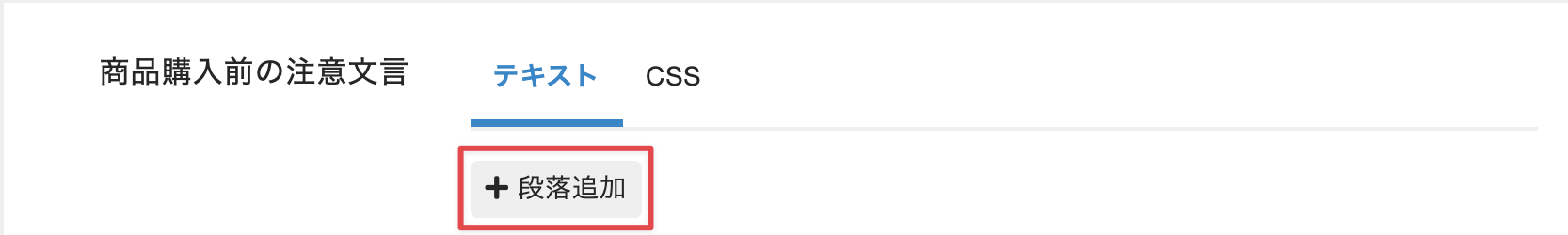 - 購入確認画面で[ご購入前の注意事項]に注意事項を表示する場合、[商品購入前の注意文言]の[段落追加]をクリックして設定行を追加し、内容を入力します。Note: [商品購入前の注意文言]が未設定(空欄)の場合、メンバーサイトの購入確認画面には、[ご購入前の注意事項]の見出しだけが表示されます。Note: 段落を複数表示する場合は、[段落追加]をクリックして設定行を追加します。
