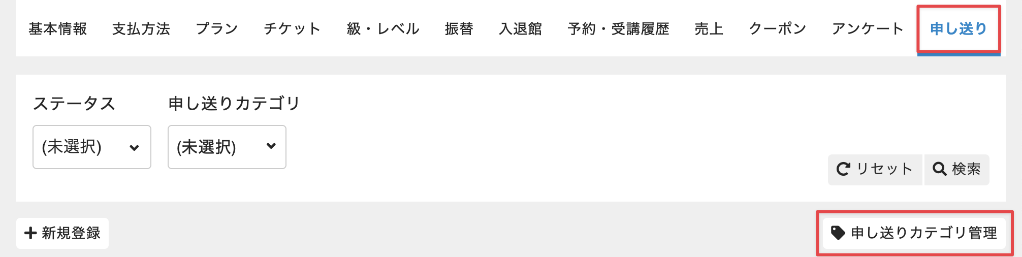 メンバー詳細画面で、[申し送り]タブを選択し、[申し送りカテゴリ管理]をクリックします。