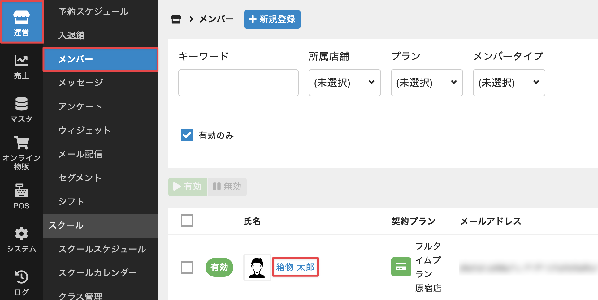 - 管理サイトのサイドバーから[運営]>[メンバー]を選択し、メンバーの一覧画面で任意のメンバーの名前をクリックします。