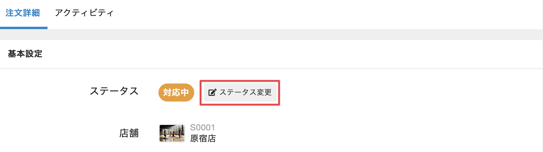 Tips: 注文全体の状態を示す[基本設定]の[ステータス]と、商品ごとの状態を示す[注文詳細]の[ステータス]は、連動していません。それぞれに対してステータスを設定する必要があります。