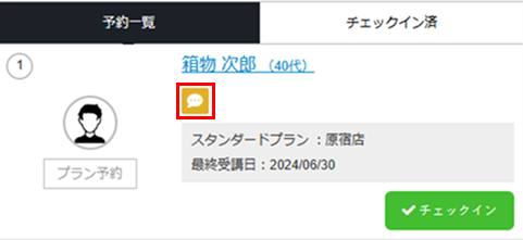 Note:ステータスが[対応中]の申し送りがあるメンバーは、レッスンの詳細画面などにアイコンが表示されます。
