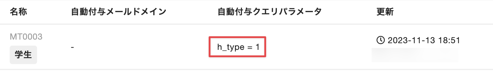 Tips:自動付与クエリパラメータが設定されているメンバータイプは、メンバータイプの一覧画面で確認できます。