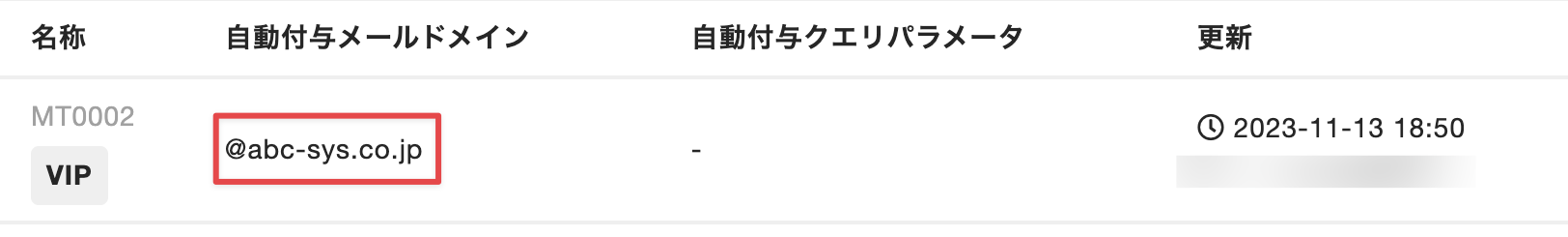 Tips:自動付与メールドメインが設定されているメンバータイプは、メンバータイプの一覧画面で確認できます。