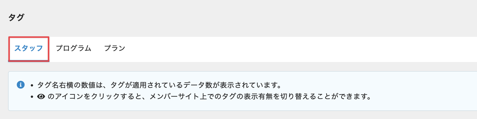 - タグの種類に応じて、[スタッフ]タブ、[プログラム]タブ、または[プラン]タブを選択します。