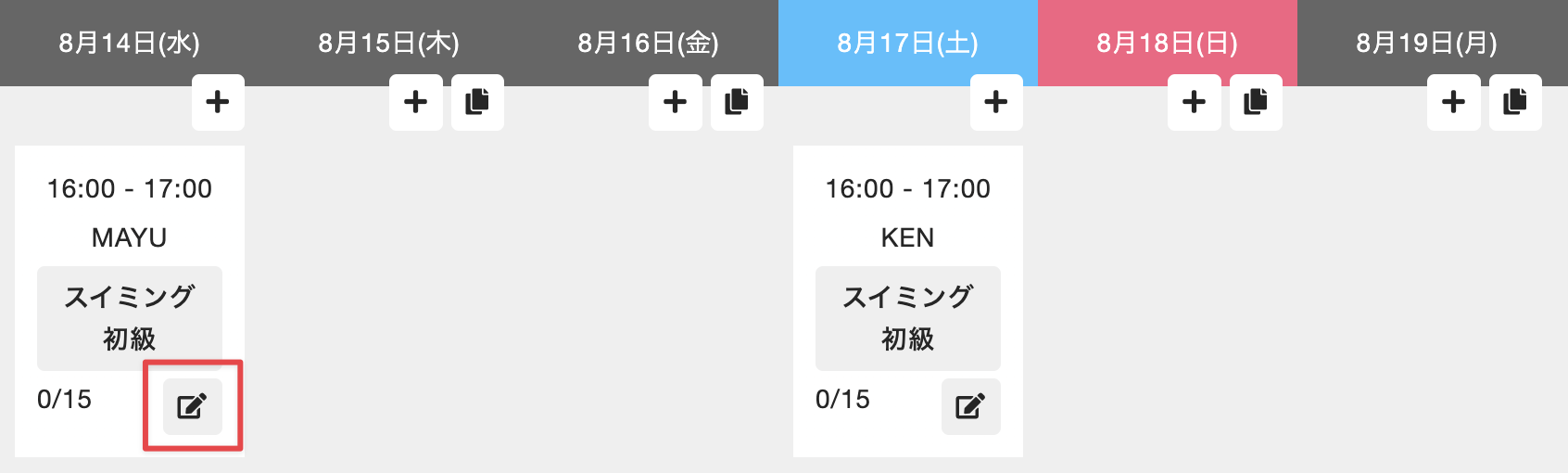 - 削除対象のレッスンの編集アイコンをクリックします。