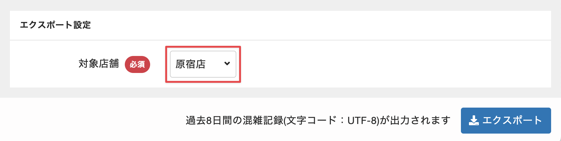 [対象店舗]からエクスポート対象の店舗を選択します。