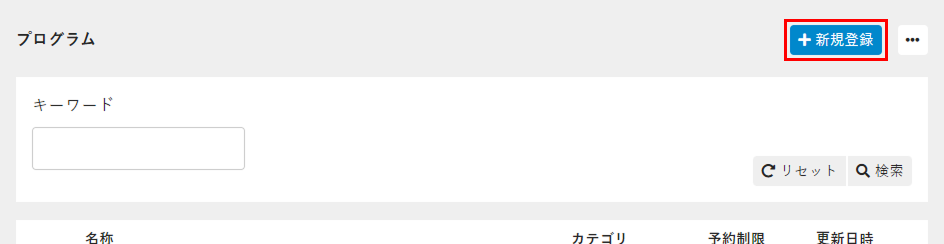 - プログラムの一覧画面で[新規登録]をクリックします。