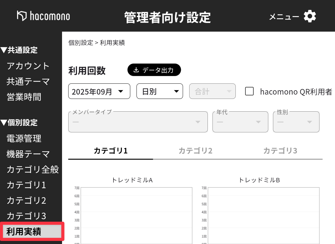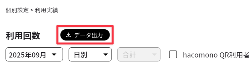 予約回数(利用回数)の実績データをCSV形式でファイルにエクスポートし、外部ツール(Microsoft ExcelやGoogleスプレッドシートなど)での集計・分析に利用できます。