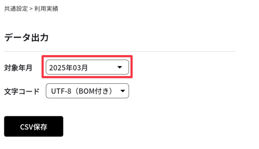 [対象年月]をタップし、エクスポート対象の年月をタップします。