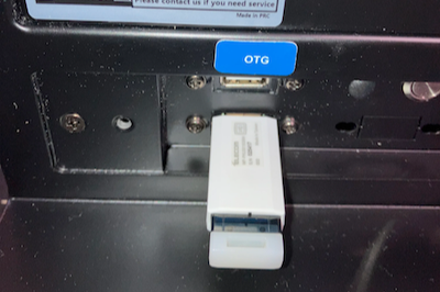 - 管理者モードでエクスポートする場合、本体背面のUSB端子にUSBメモリーを挿入します。