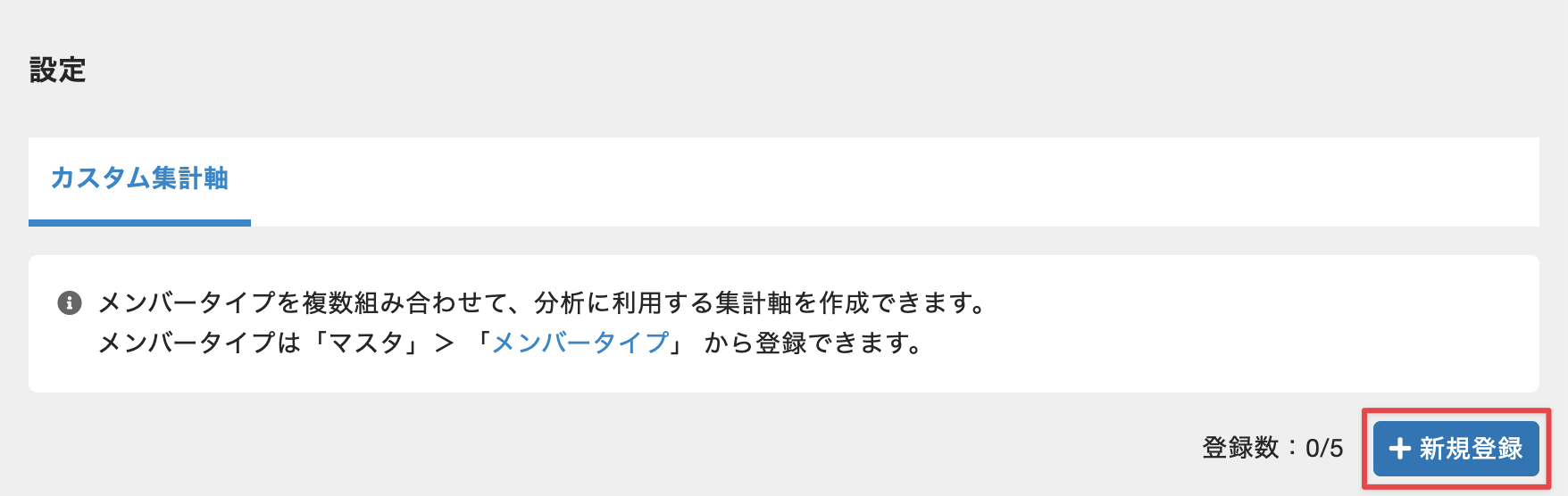 設定の前に:カスタム集計軸を登録するには、使用するメンバータイプを事前に登録しておく必要があります(「メンバータイプを登録する」を参照)。