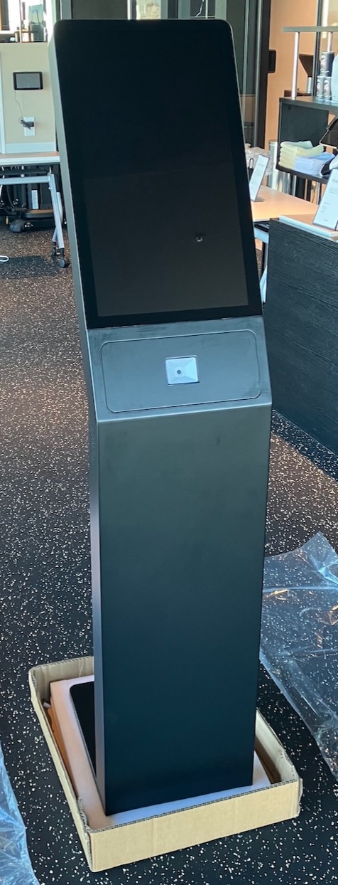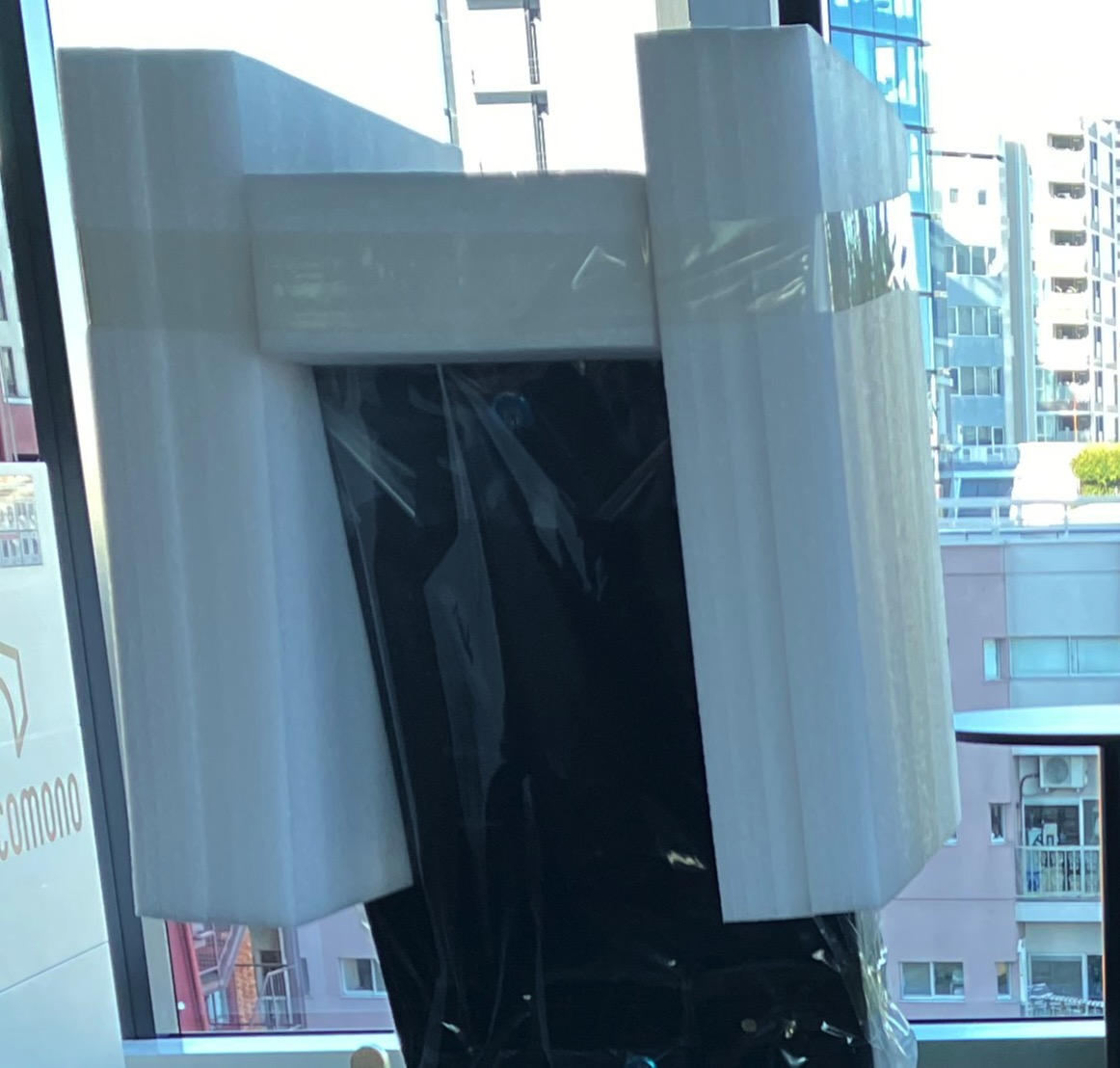 - 予約ボードのモニターにフィルムを貼り、袋をかぶせます。