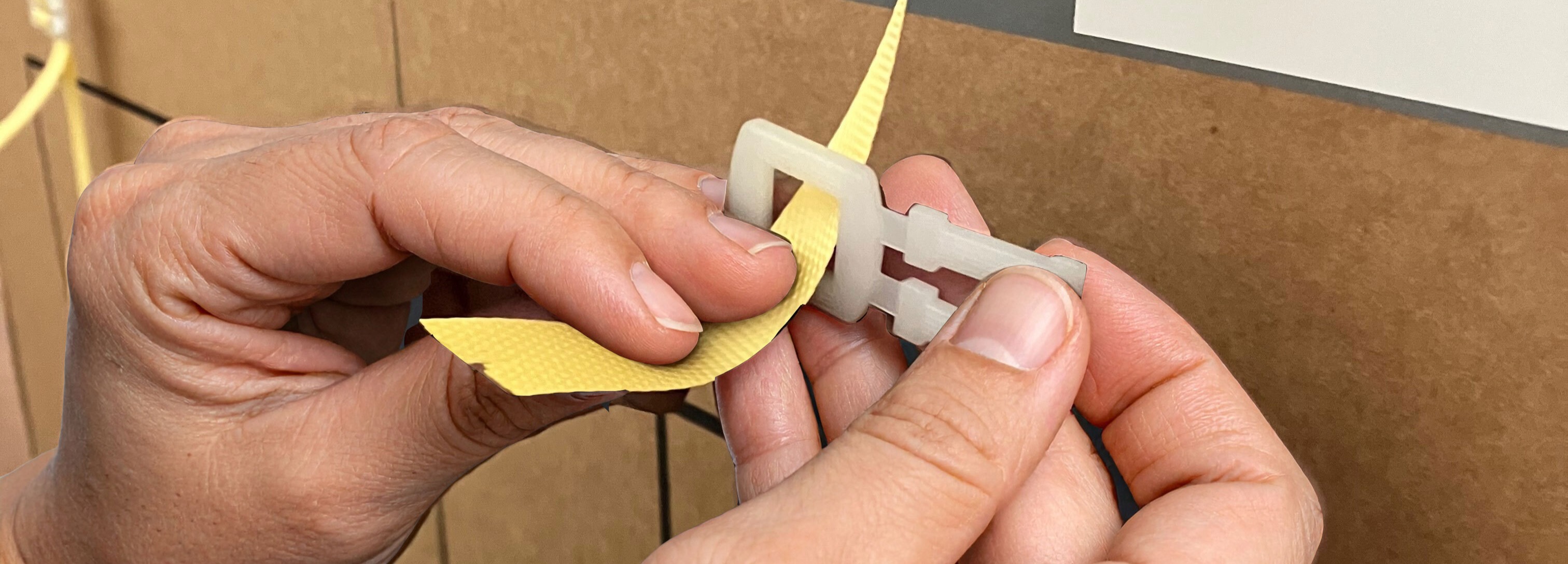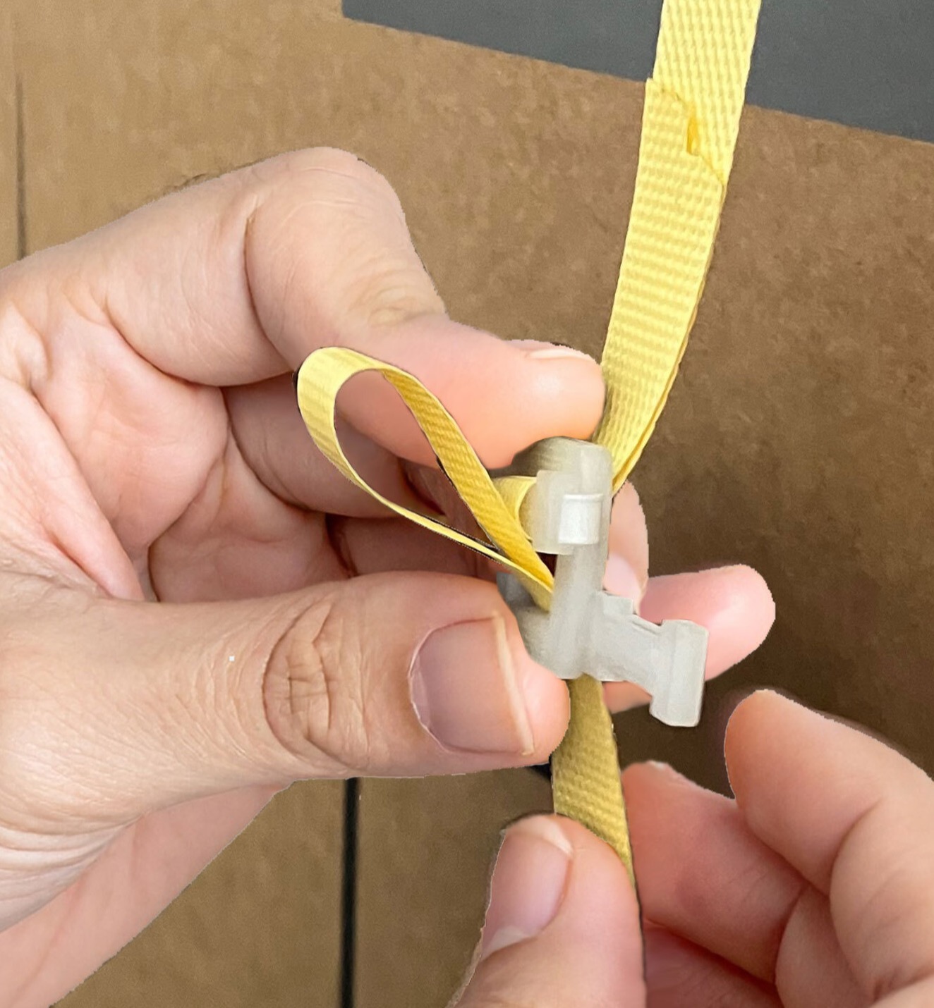梱包紐(PPバンド)をストッパーで締めるには、以下の手順を行います。