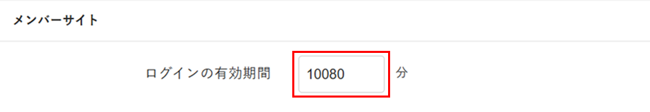 - [メンバーサイト]の[ログインの有効期間]に、ログイン状態を維持する期間を分で入力します。