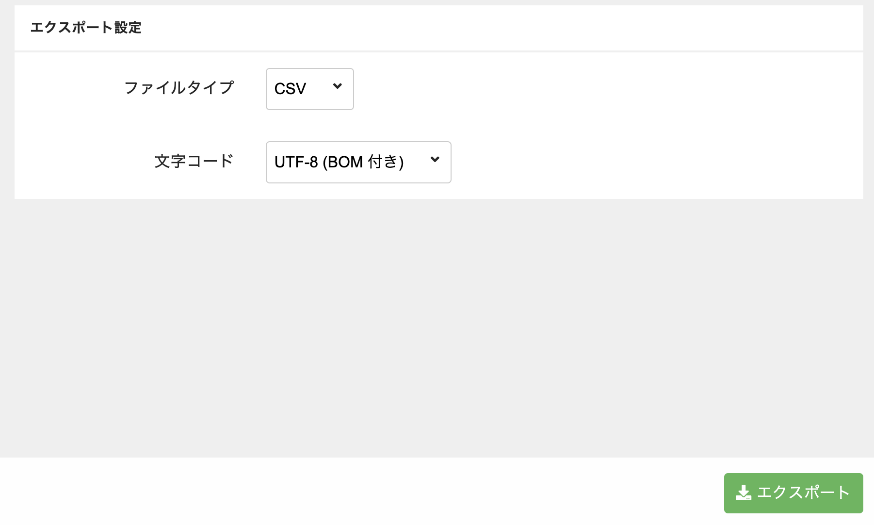 CSV、TSVから選択します。文字コード エクスポートされるファイルの文字コード。